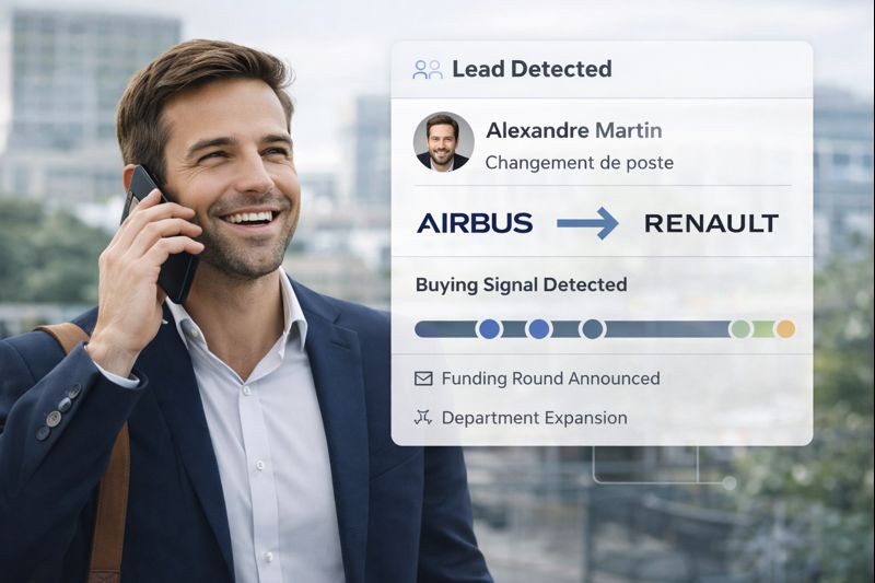 Nous travaillons avec des partenaires spécialisés en data B2B et utilisons l’IA pour traduire des signaux faibles en informations exploitables : pain points probables, produits ou services vendus, enjeux visibles. Ces éléments permettent au commercial d’appeler avec un discours informé, jamais générique.